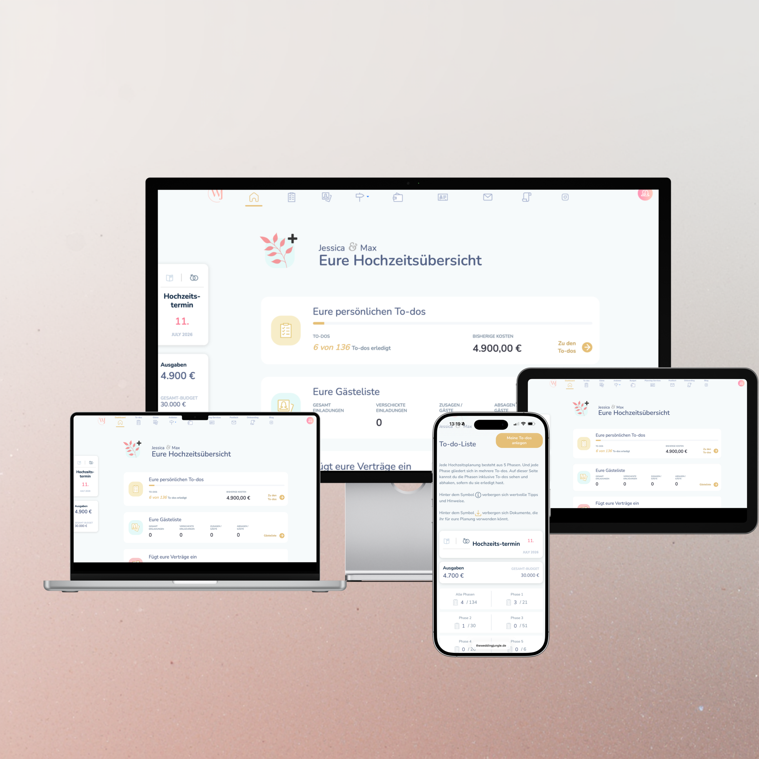 Mit unserem Onlinetool steuerst du deine komplette Hochzeitsplanung von A–Z – wie ein Wedding Planner.